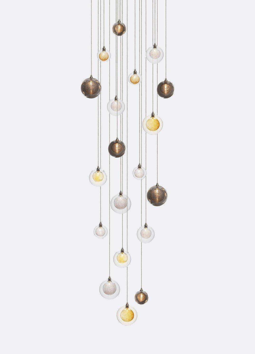 Like the fantastic library that serves as backdrop, this majestic fixture is illuminating. Inspired by the bright ideas that books can spark, this grand fixture of multi-colored Kadurs kindles deep conversations. Form follows function; in size and scope this fixture serves a practical purpose of filling the shared open space of the dining room and library… but it does so with the style of a confident author. The result is a cozy and magical ambiance perfect for curling up with a good book or telling a good story over dinner.