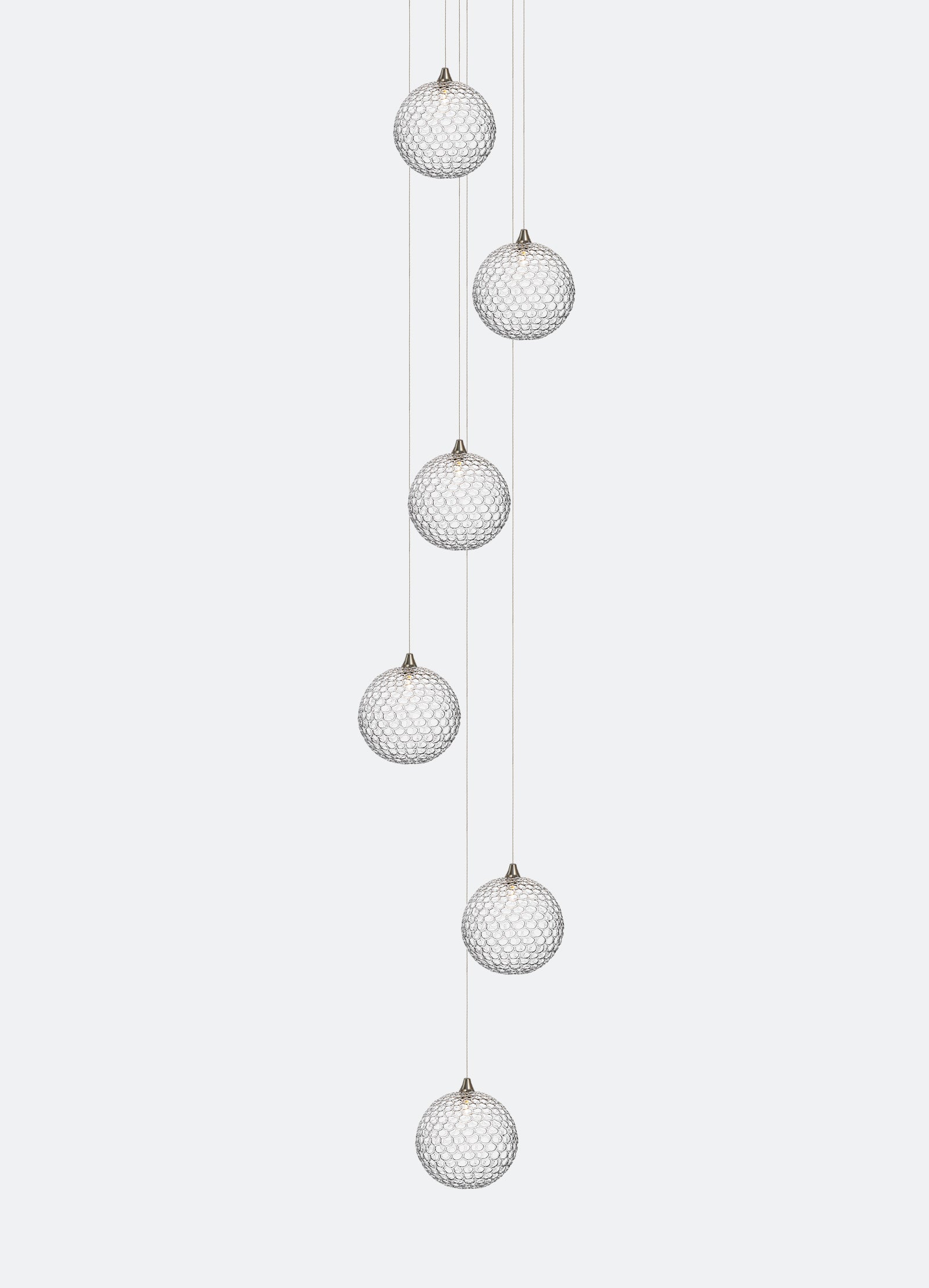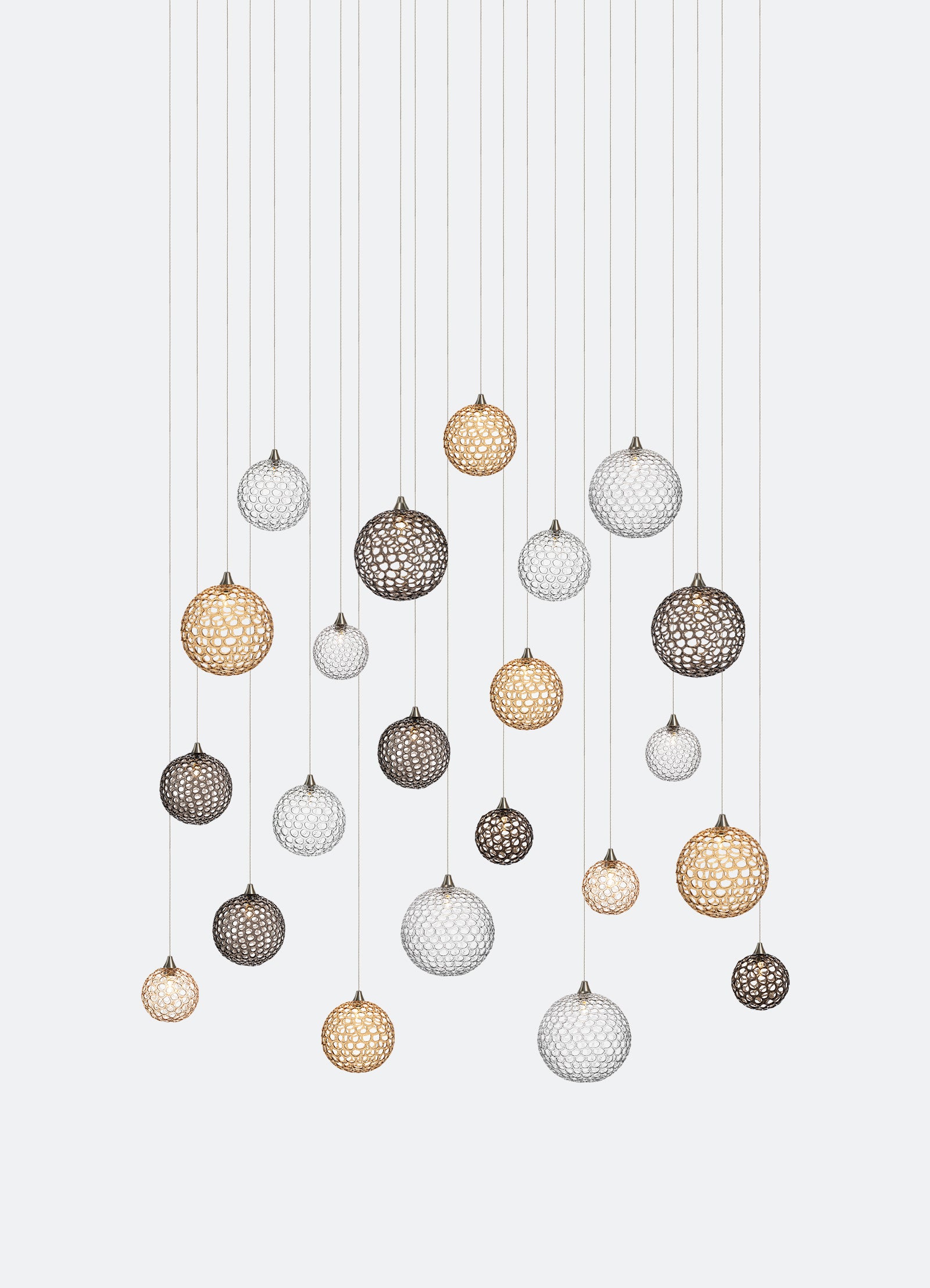 Each hole is delicately perforated, creating an open mesh texture in every Mod pendant. Whether you want individual pendants, or a multi-pendant chandelier, you may customize your fixture with as many pendants as you need - all tailored to fit your space and your style. View "Options" for more information. Contact us directly for pricing and additional details on our custom lighting and decor.