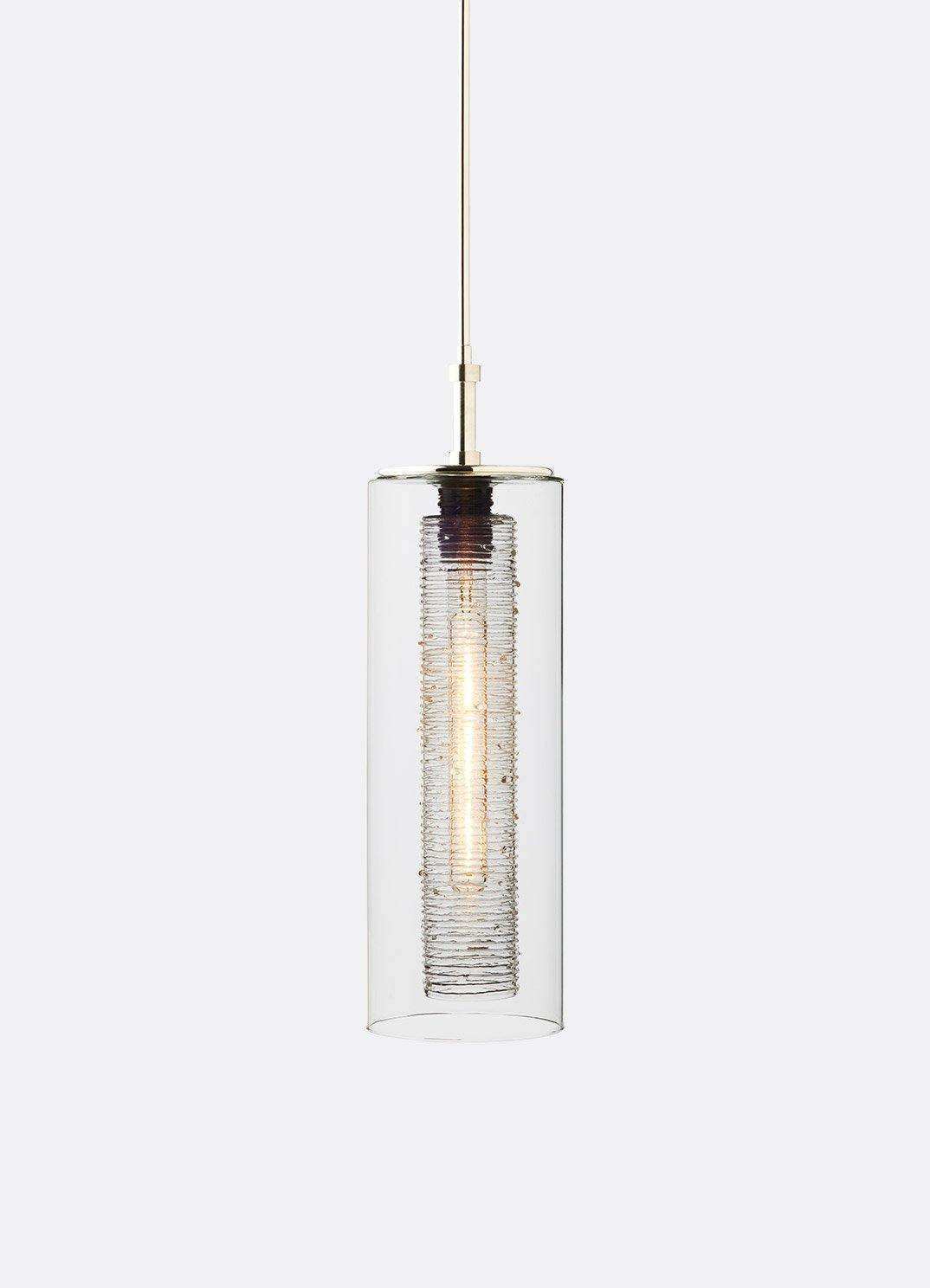 The Nava pendant is a smooth glass cylinder on the outside, with a textured glass tube inside. Whether you want individual pendants, or a multi-pendant chandelier, you may customize your fixture with as many pendants as you need - all tailored to fit your space and your style. View "Options" for more information. Contact us directly for pricing and additional details on our custom lighting and decor.
