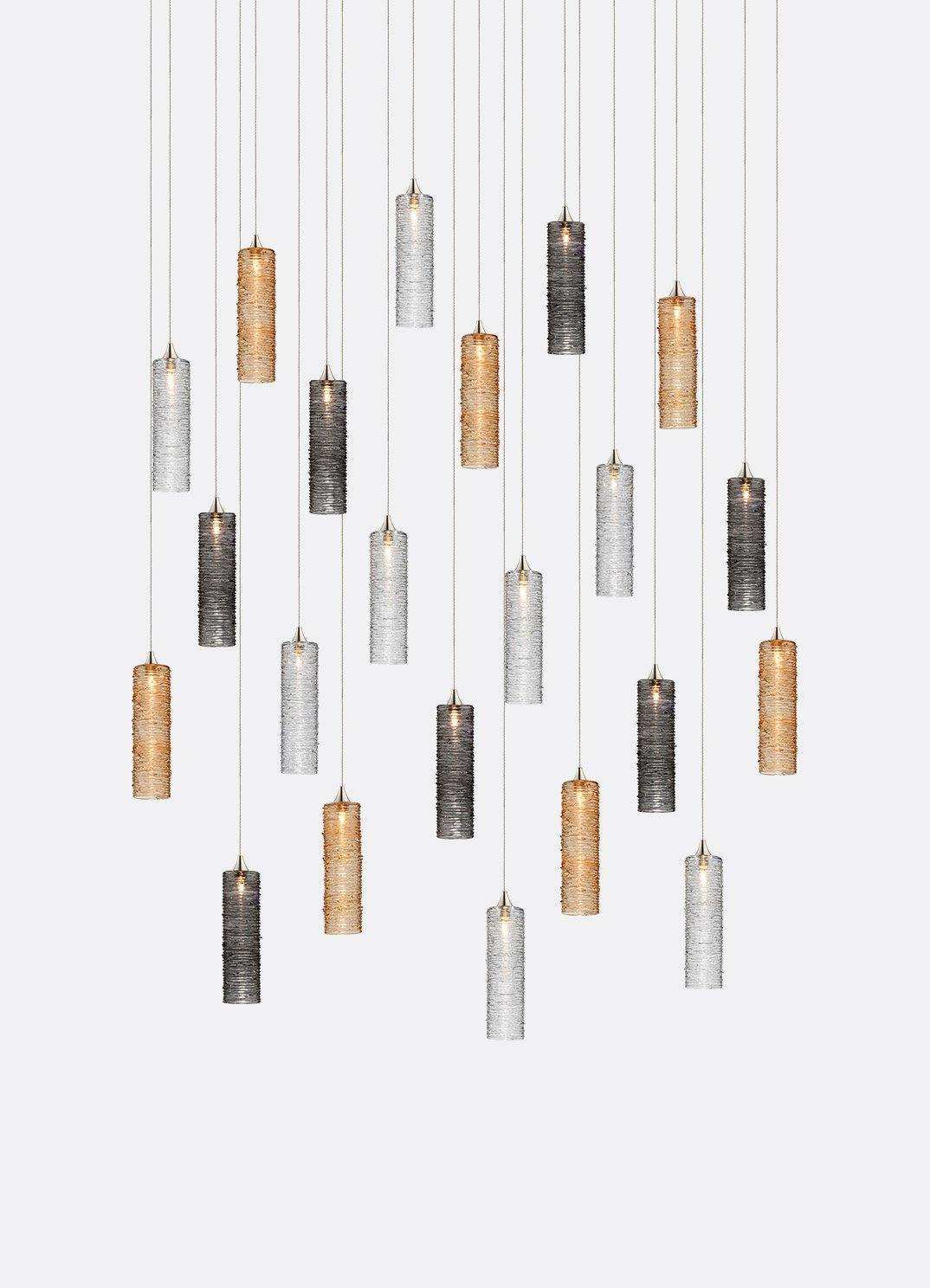 Ropes of drizzled glass encase hollow tubes of blown glass, creating a richly textured surface on each Tamar pendant. Whether you want individual pendants, or a multi-pendant chandelier, you may customize your fixture with as many pendants as you need - all tailored to fit your space and your style. View ""Options"" for more information. Contact us directly for pricing and additional details on our custom lighting and decor.