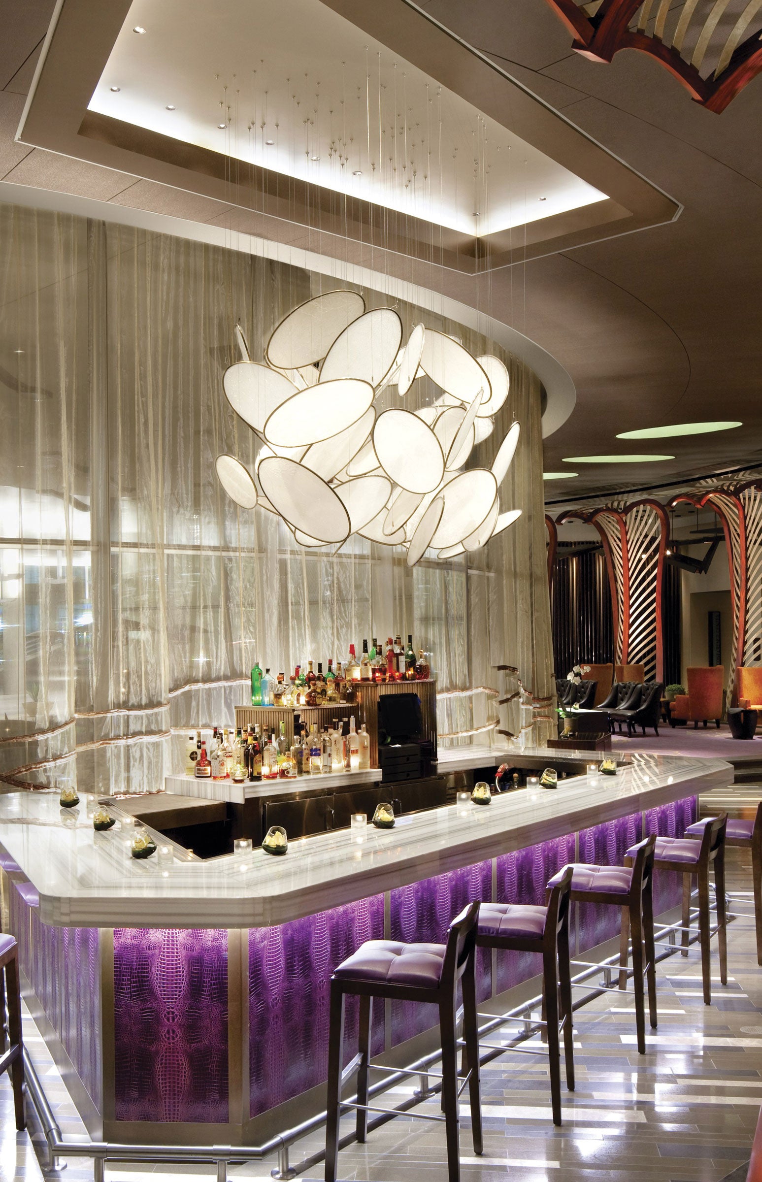Las VegasInspired by nature, this Silver Dollar Chandelier over a hotel bar holds its own among all the Vegas lights.