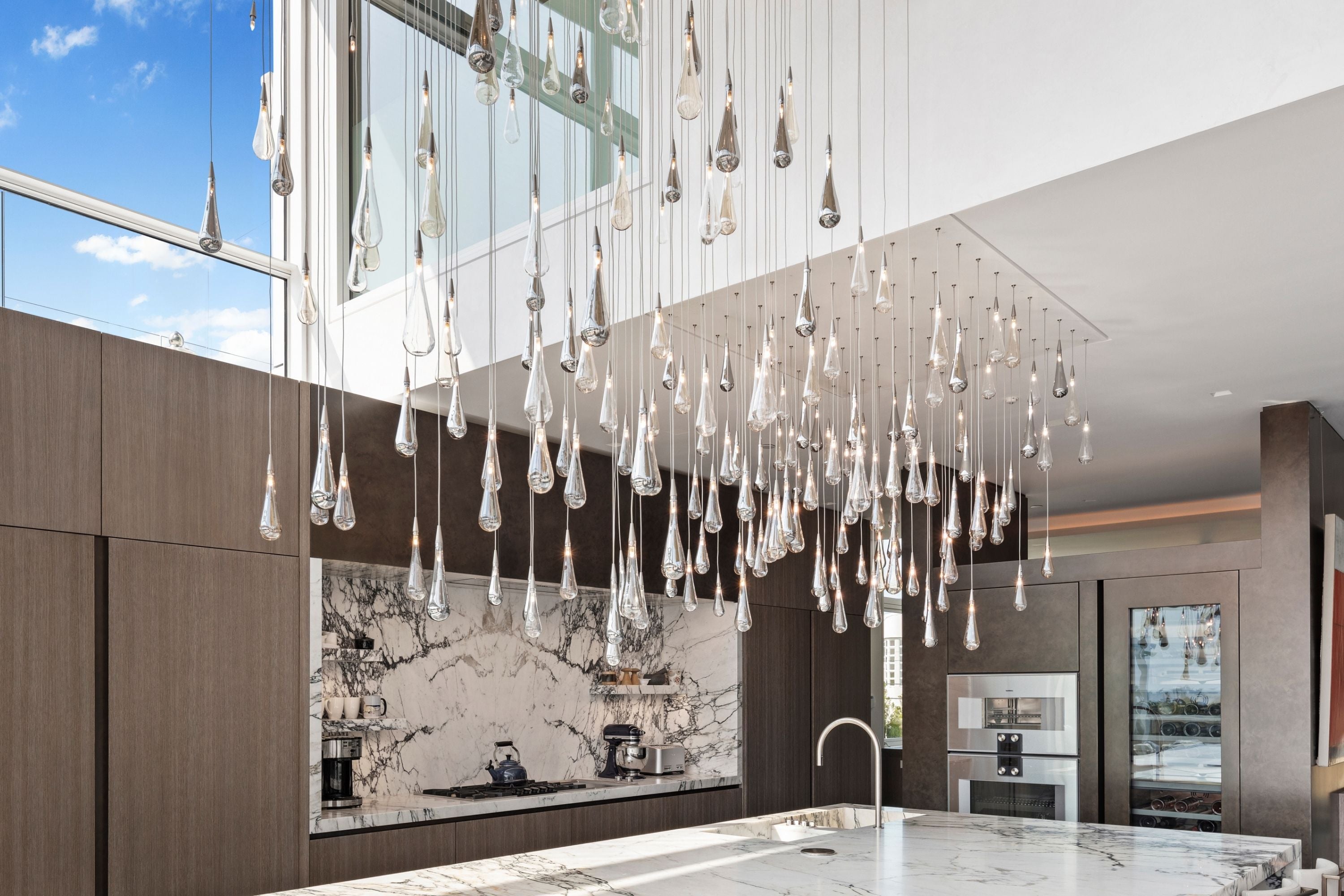 PrivateThis custom Crystal Shell chandelier balances organic shaped pendants with a refined chandelier design.